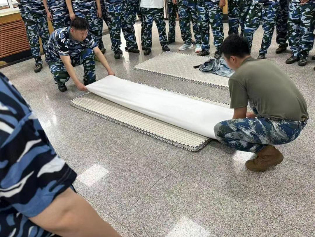 受天气影响,在室内开展军训活动,大家也依旧认真对待。从军姿的站立到正步的训练,在一次次摆臂、迈步、敬礼的训练中,看似简单的动作,却能让同学们体会到军人的不易与艰辛,意识到协同合作的重要性,更能让整个队伍更加亲密与团结。秋风起而雨水至,伴随着军训的到来,窗外的凉意也随风雨而起,但新生们的军训并未因此停止,公寓楼的角角落落里,他们的热情依旧。室内军训也别有滋味,雨声中的训练充满雨的诗意却没有雨的落寞。
