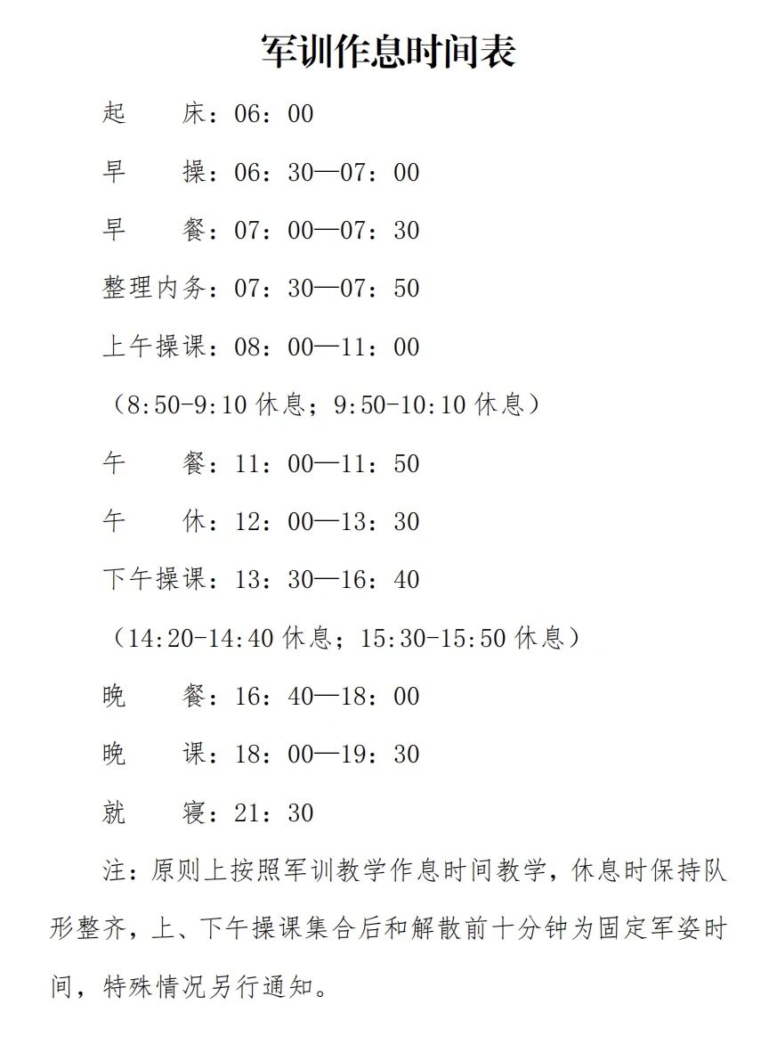⑪ | 哈尔滨金融学院2025年学生军训作息时间表