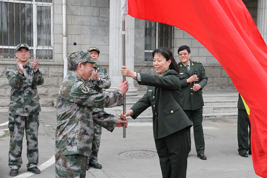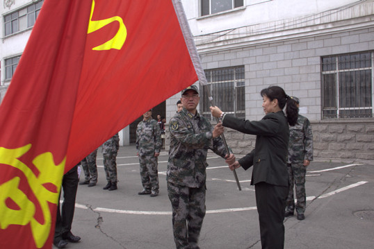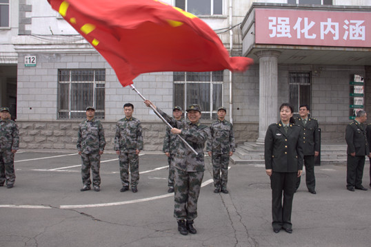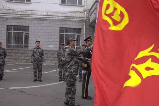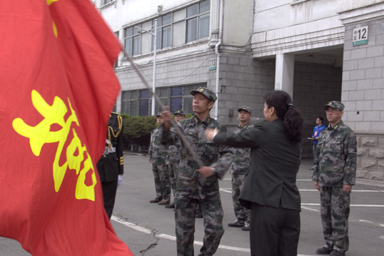 哈尔滨金融学院2014级学生军训授旗仪式剪影