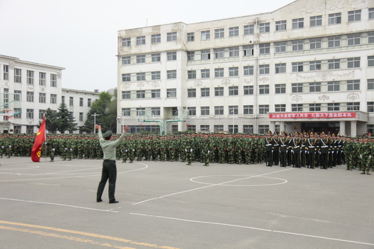 上午十点,庄严的国歌声响彻学院上空,全体师生齐声高唱,军训成果汇报表演暨表彰大会正式开始。学院国旗护卫队旗手高举军旗、正步迈入会场,军旗就位,分列式表演正式开始。在八一军旗的带领下,在雄壮的《中国人民解放军军歌》的伴奏中,三十四个连队依次正步通过主席台。全体参训学生口号嘹亮、步伐整齐,赢得了主席台上各位领导的阵阵掌声。