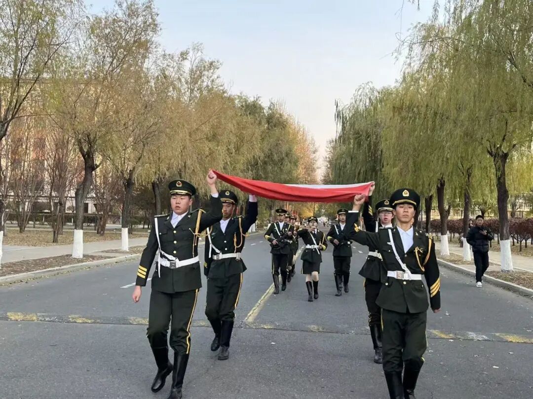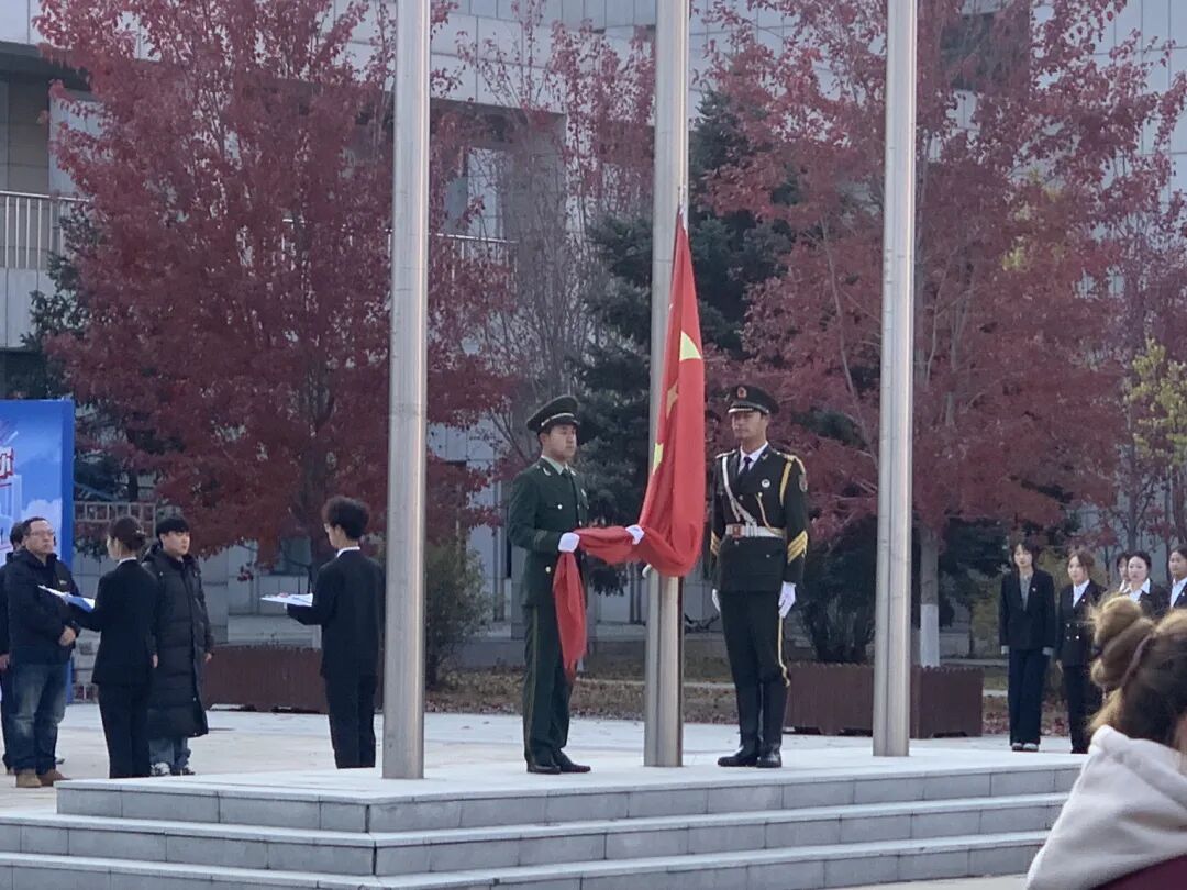 2025年10月27日7时20分,哈尔滨金融学院国旗护卫队参加了由管理学院承办的“传承薪火续写华章”主题升旗仪式,圆满完成本次升旗任务。