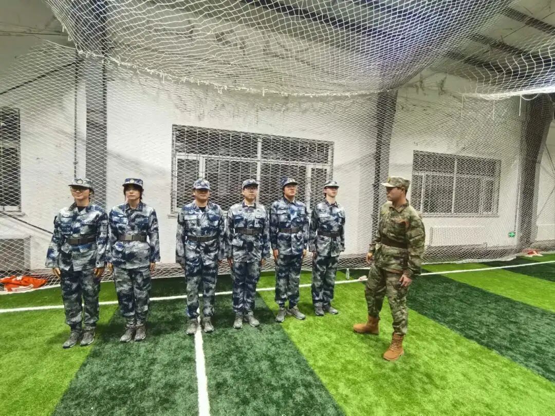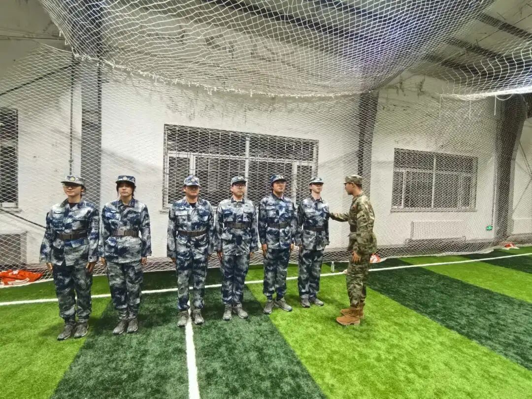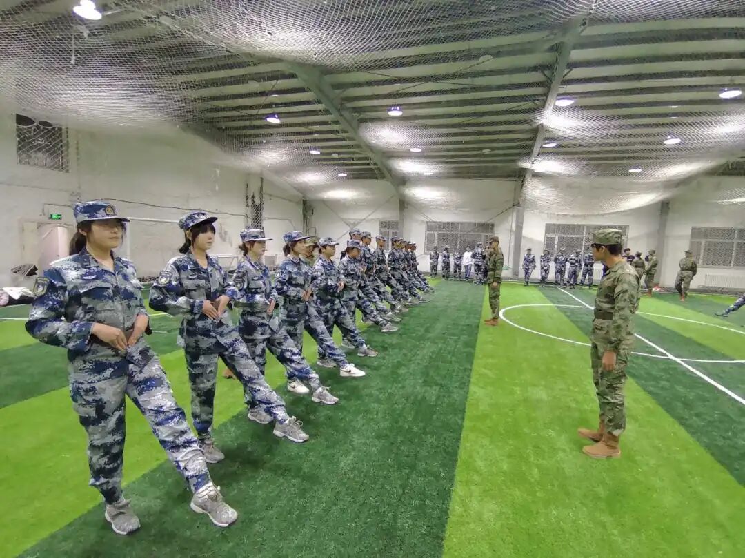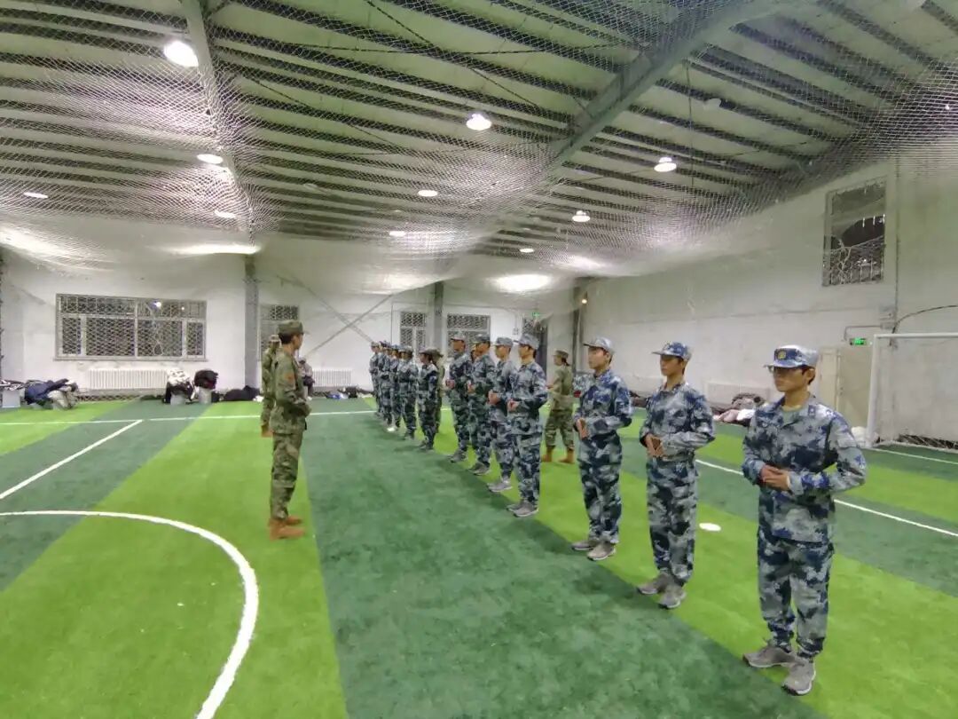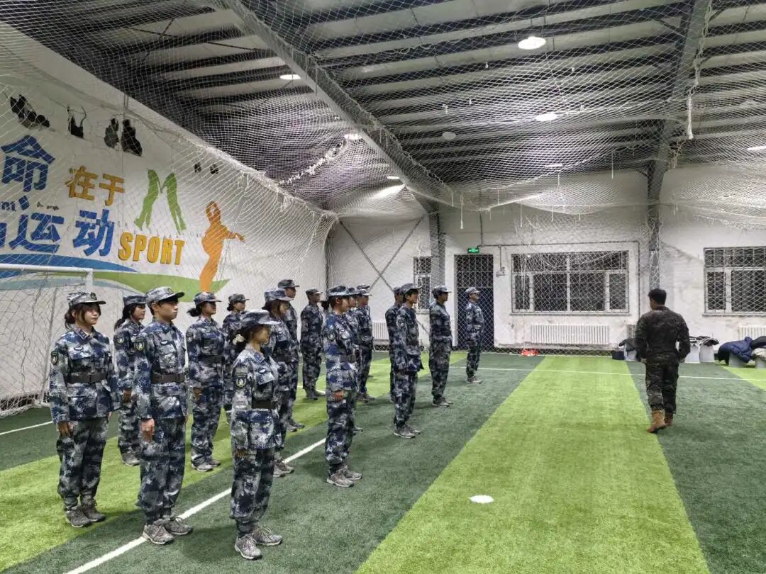 “正步走!”随着指挥员一声令下,队员们迈着铿锵的步伐向前行进。室内的空间虽有限,却挡不住他们对标准的追求——步幅保持75厘米,行进速度每分钟110-116步,每一个细节都反复打磨。有人踢腿力度不足,便对着镜子反复练习;有人摆臂幅度不均,便在队友的提醒下调整姿态,相互纠错、彼此鼓励,训练场里满是青春奋斗的气息。